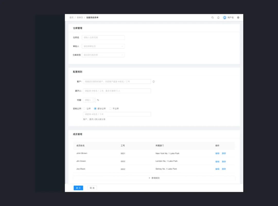 表單內(nèi)容數(shù)量 >15 個建議使用頁簽分組或采用分組標題欄展開收起樣式。