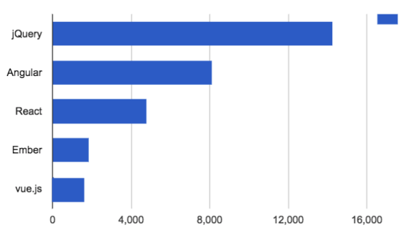 第二個就是框架或者庫了,小編借鑒了來自Indeed.com的數(shù)據(jù),它聚合不同站點上對于不同職位的開發(fā)者的招聘信息。 近幾年招聘信息急劇下降,但他們?nèi)匀皇占銐蚨嗟臄?shù)據(jù),可以看出目前招聘上對于前端開發(fā)者技能需求的情況為: